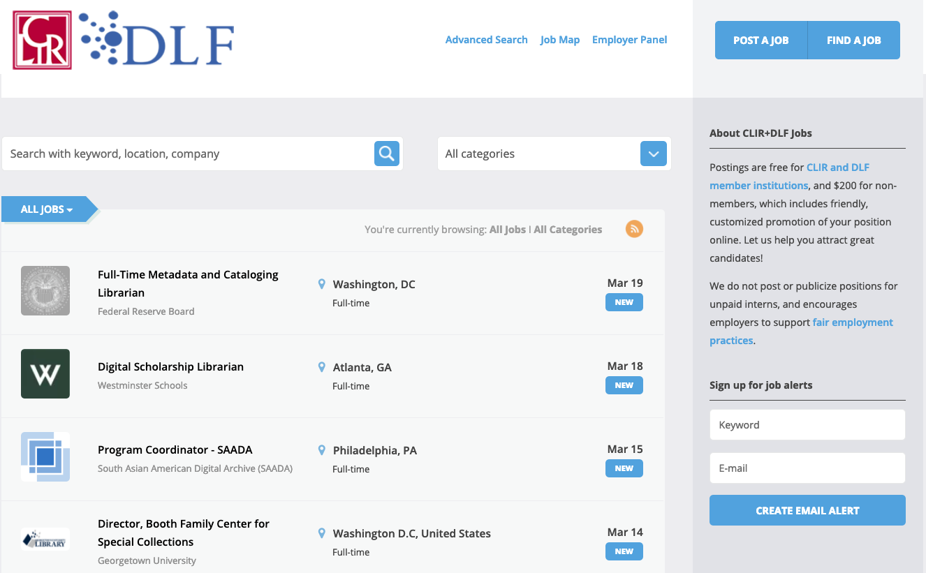 Home > Opportunities > CLIR and DLF Job Board > CLIRDLF jobs homepage screenshot
