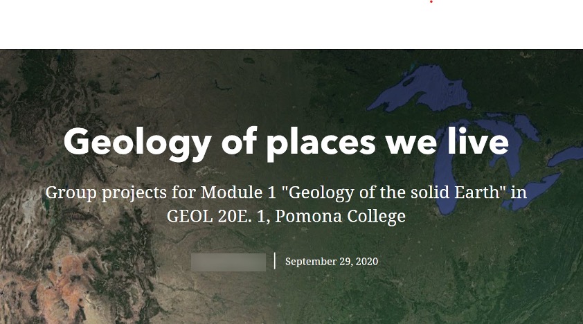 Header for Geology class group StoryMap at Pomona College, Fall 2020